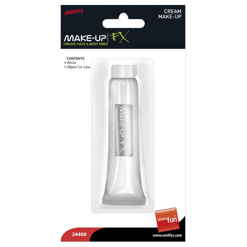 Valkoinen Kasvo- ja Vartalomaali Cream sisältää tuubin, jossa on 28 ml valkoista vesipohjaista kasvo- ja vartalomaalia.
