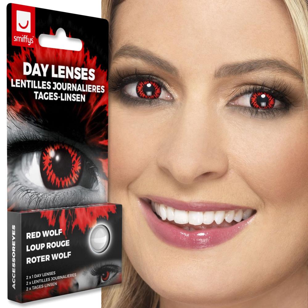 Värilliset linssit Red Wolf ovat mustia ja niissä on punainen kuvio koko linssissä. Linssit kestävät 3 kuukautta pakkauksen avaamisen jälkeen. Hyvä vaihtoehto niille, jotka etsivät pelottavaa lookia!