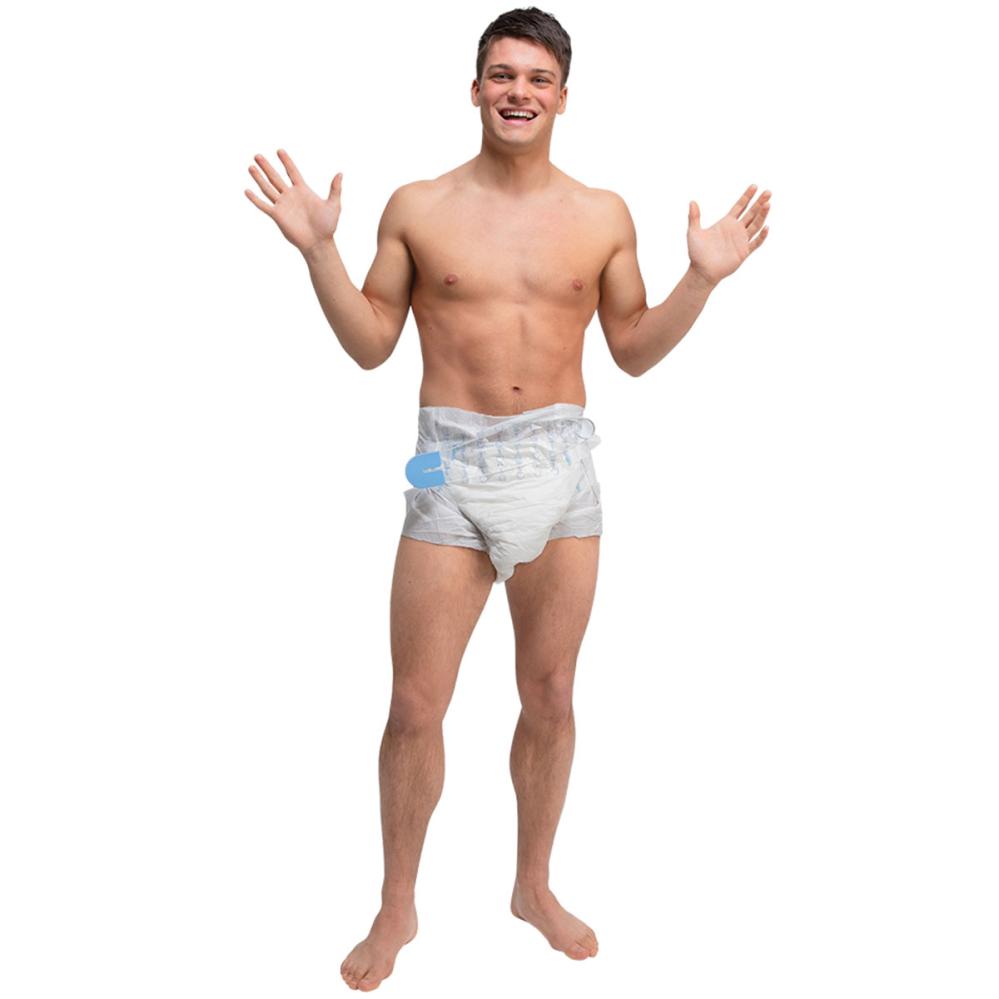 Aseta nauru keskiöön tällä aikuisvauvan asulla, täydellinen puku polttareihin tai sinulle, joka rakastat hauskoja naamiaisvaatteita. Elastisella vyötäröllä varustettu vaippa tekee asusta sekä mukavan että ikimuistoisen.