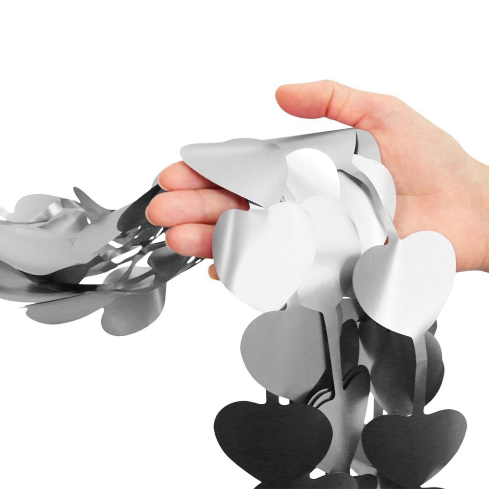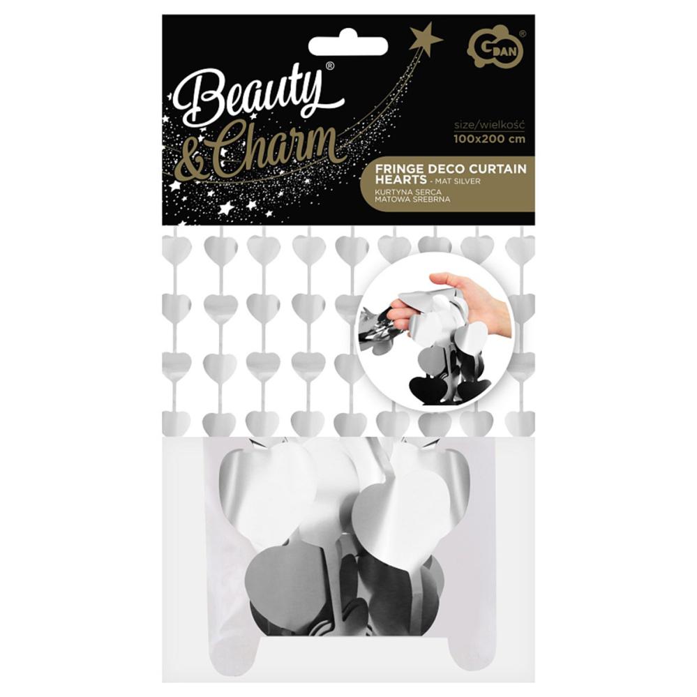 Verho Sydämet Matta Hopea on oviverho, jossa on riippuvia sydämiä mattahopeisena.