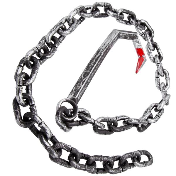Verinen Lihakoukku Ketjulla on mustan ja hopean värinen naamiaisrekvisiitta, verisen lihakoukun muotoinen ja ketjulla varustettu.