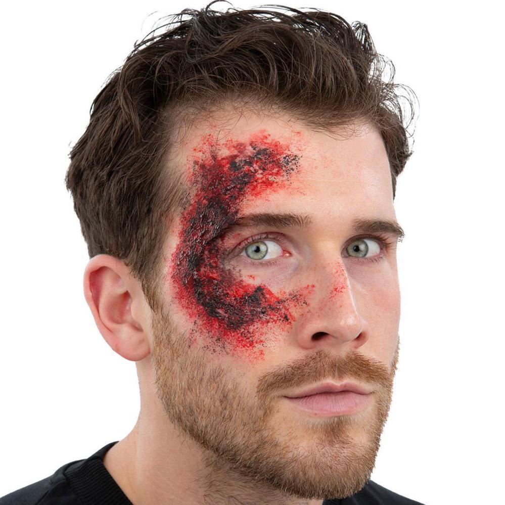 Verinen Palovamma Meikkisetti on setti, jossa on kaikki mitä tarvitaan realistisen ihotehosteen luomiseen palovamman tai muun vamman kohdalla. Mukana tulee purkki rupeutuvaa verta, tuubi mustaa verta ja musta töpöttelysieni helppoon levitykseen.
