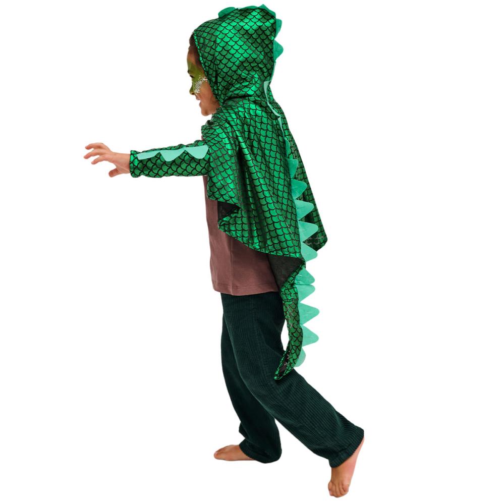 Muuta leikki seikkailuksi tällä kimmeltävän vihreällä lohikäärmeviitalla. Piikikkään selän, hännän ja hupullisen viitan ansiosta se on täydellinen lohikäärmeeksi pukeutumiseen jokaiselle lapselle. Täydellinen lohikäärmeasu, josta lapset pitävät!
