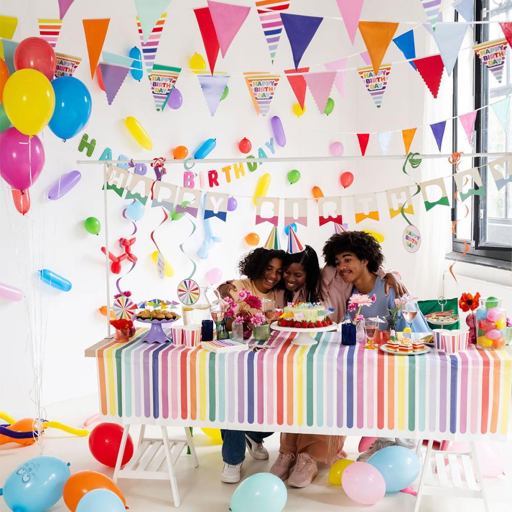 Nosta tunnelmaa värikkäällä 6 metriä pitkällä viirinauhalla. Täydellinen roikkuvaksi koristeeksi juhliin, tilaa on kymmenelle värikkäälle viirille. Helppo pakata kasaan ja käyttää uudelleen parhaiden juhlien koristeiden joukossa.