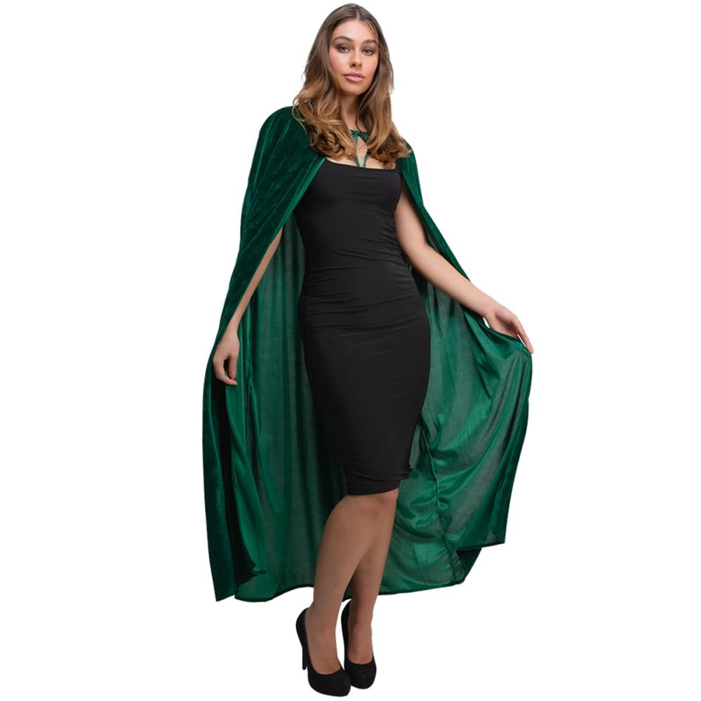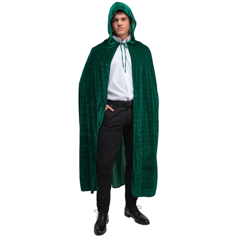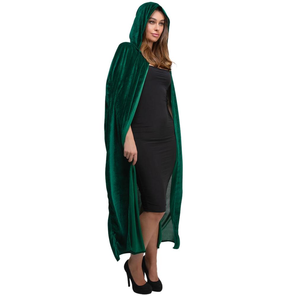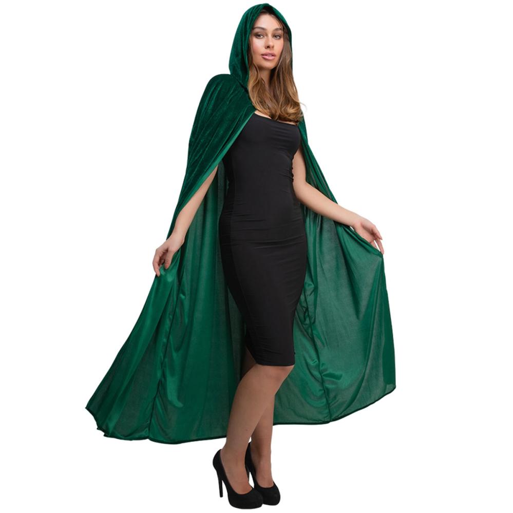 Erota joukosta vihreällä, samettimaisesta kankaasta tehdyllä hupullisella Halloween viitalla. Pitkä vihreä viitta, jossa on solmittava nauha, sopii täydellisesti naamiaisviitaksi, aina saduista kauhuun.