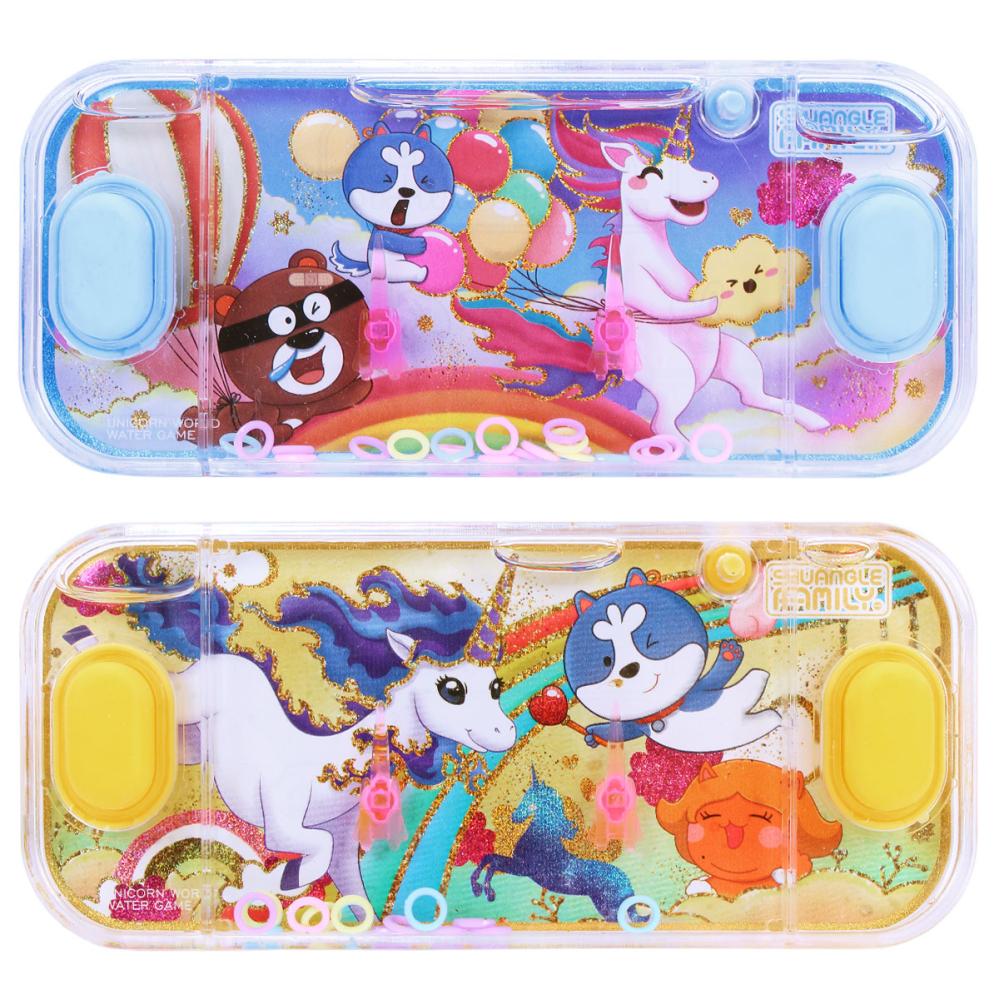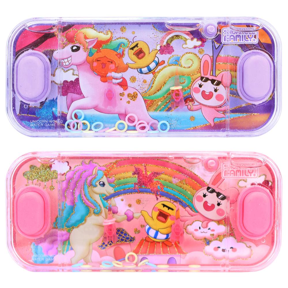Yksisarvinen Vesipeli sisältää klassisen vesirengaspelin, jonka näytössä on yksisarvisaihe. Käytä nappia saadaksesi renkaat kahden tapin päälle. Saatavana neljässä eri versiossa (myydään yksittäin ja lähetetään lajittelematta).